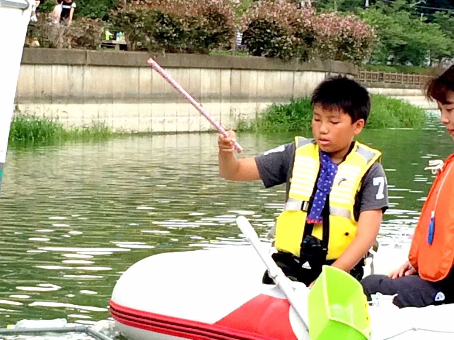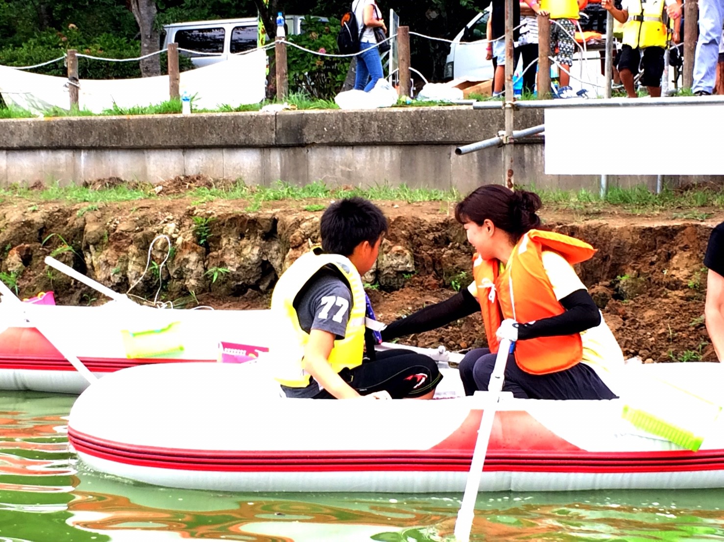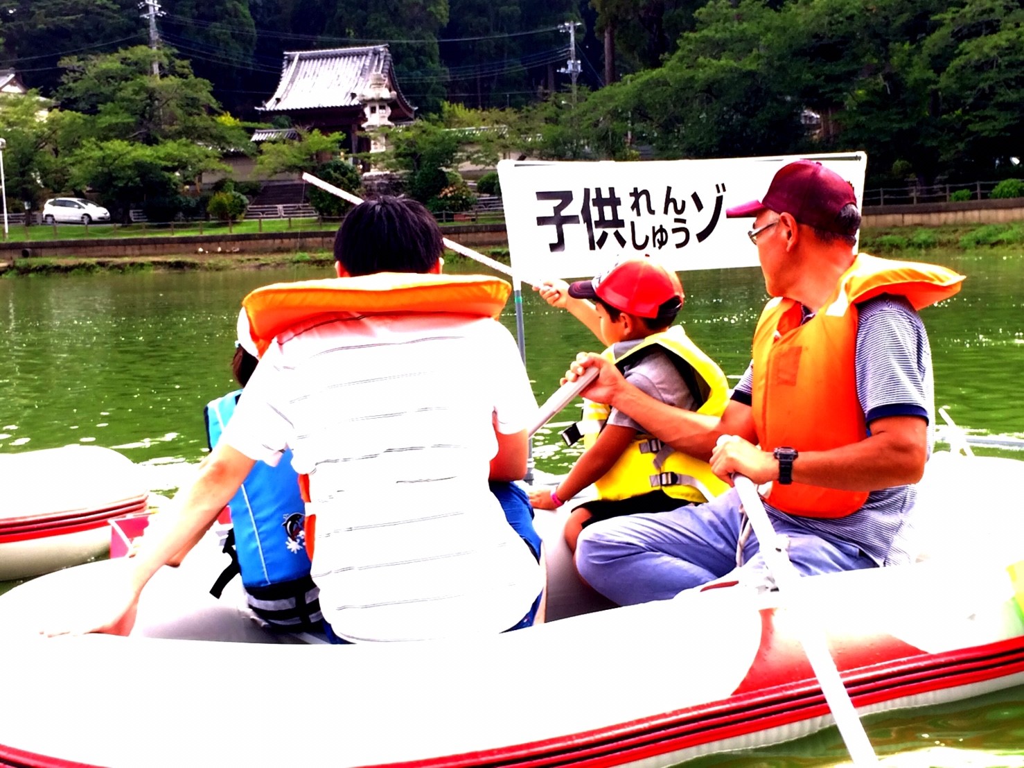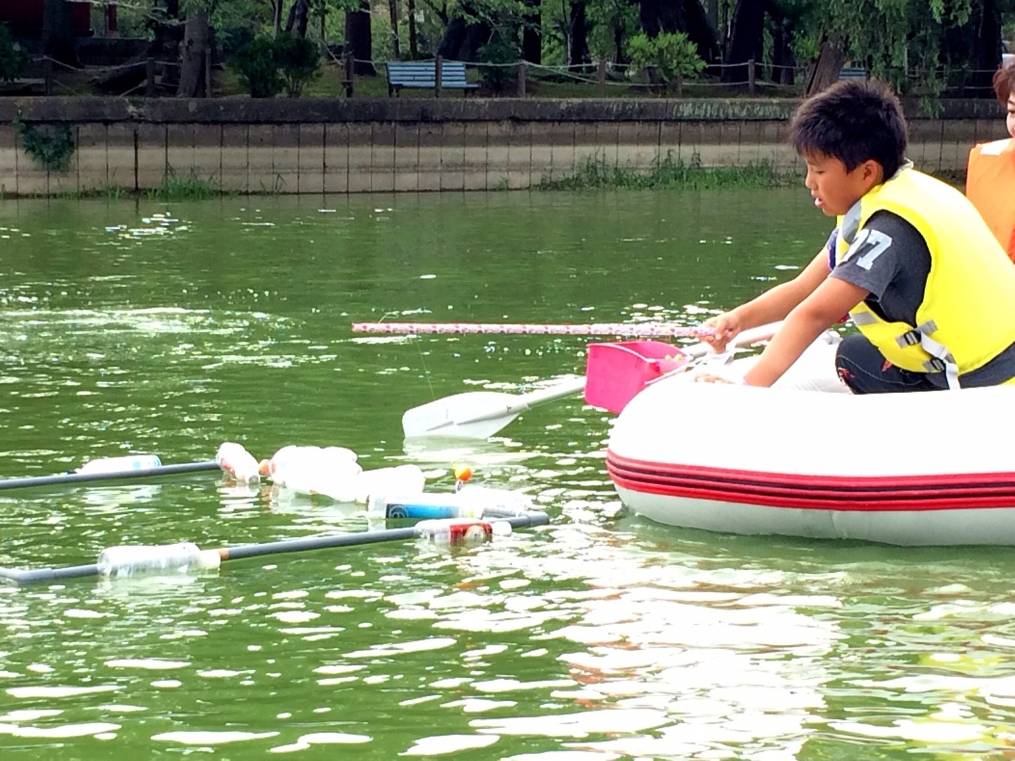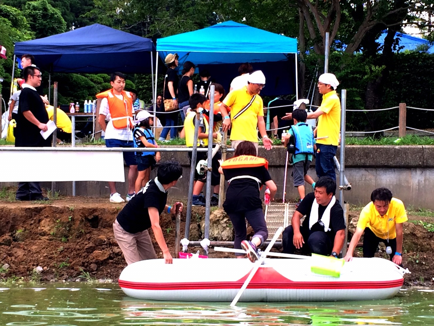 「八鶴湖クルーズ」ではボートを利用し、八鶴湖の水質に直に触れてもらうことで、八鶴湖の水質及び環境改善に対する意識の向上を図ります。 対象者は小学生とお父さん、またはお母さんの2組1チームでボートに乗り15分以内に湖畔のコースをクルーズし、景品が当たる抽選番号をGETしてもらう競技です。コースはボートに慣れてもらう練習ゾーン、そして中継ポイント「釣りゾーン」にて抽選番号を吊り上げてもらいます。そして「問題ゾーン」では八鶴湖にちなんだ問題をGETし、ゴールテントで答え合わせ、正解すればもう一つ抽選番号がもらえる仕組みです。抽選番号は最後までもってると良いことが起こるかも!!