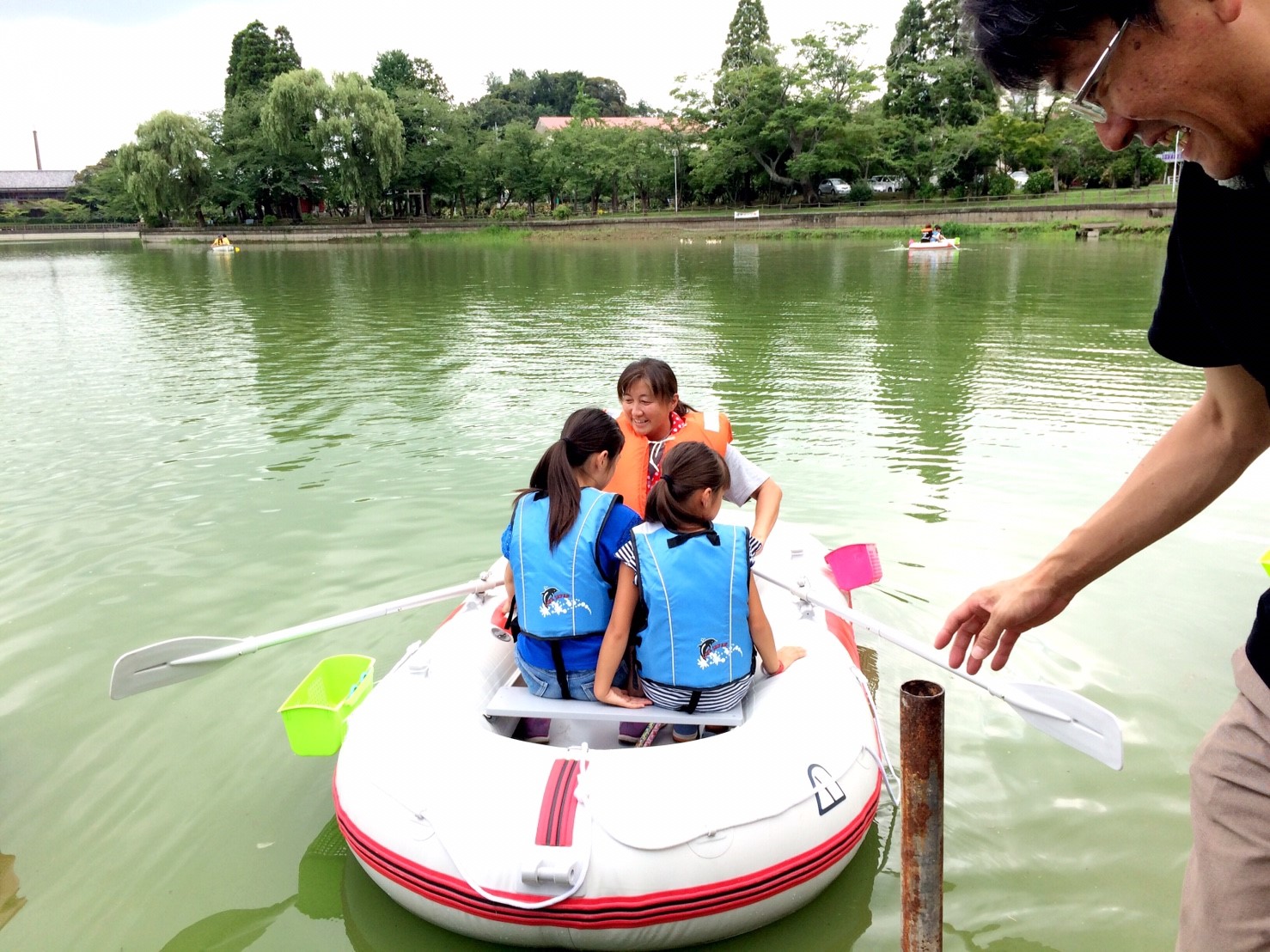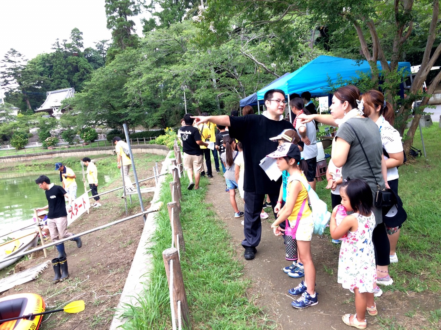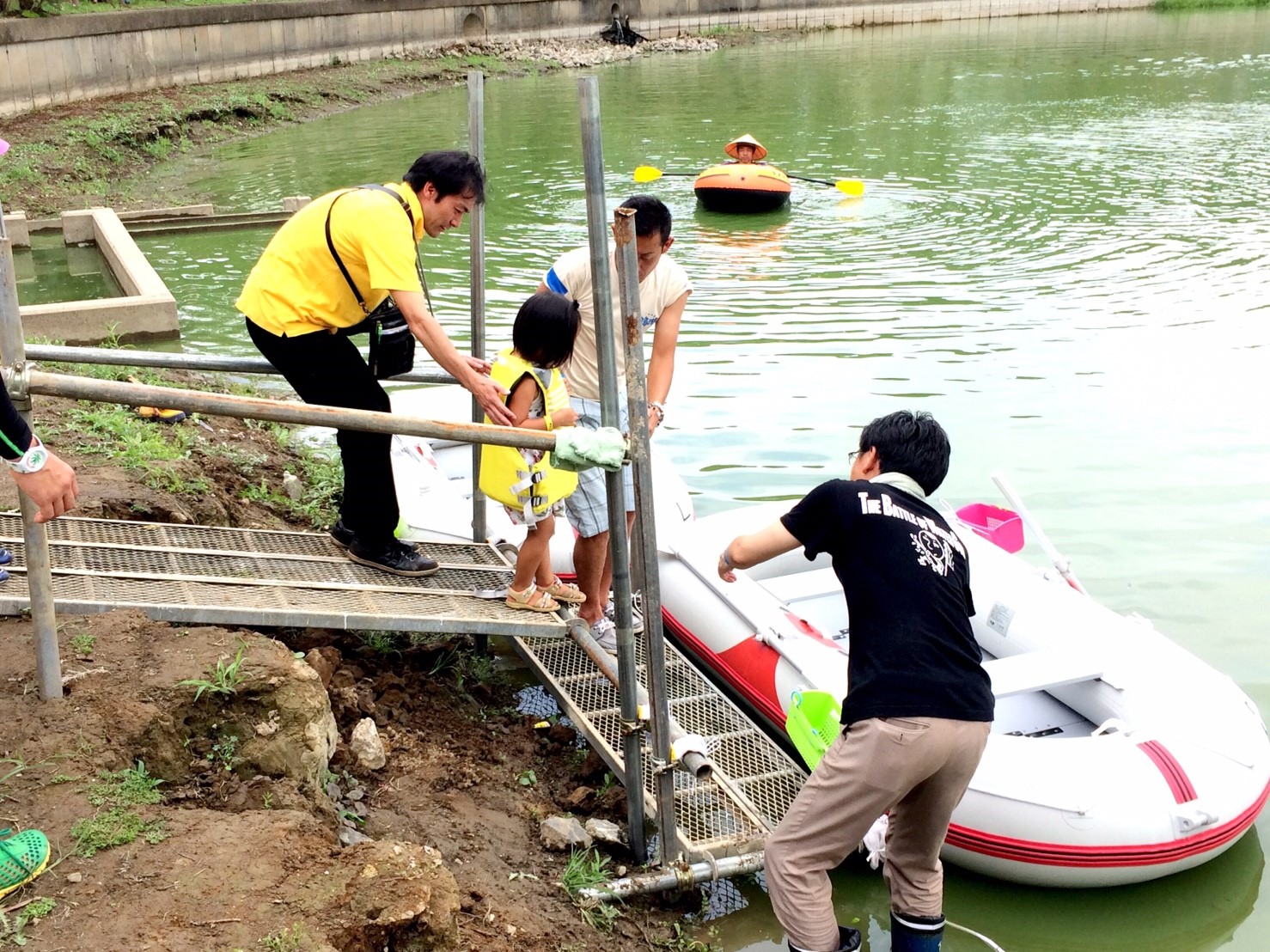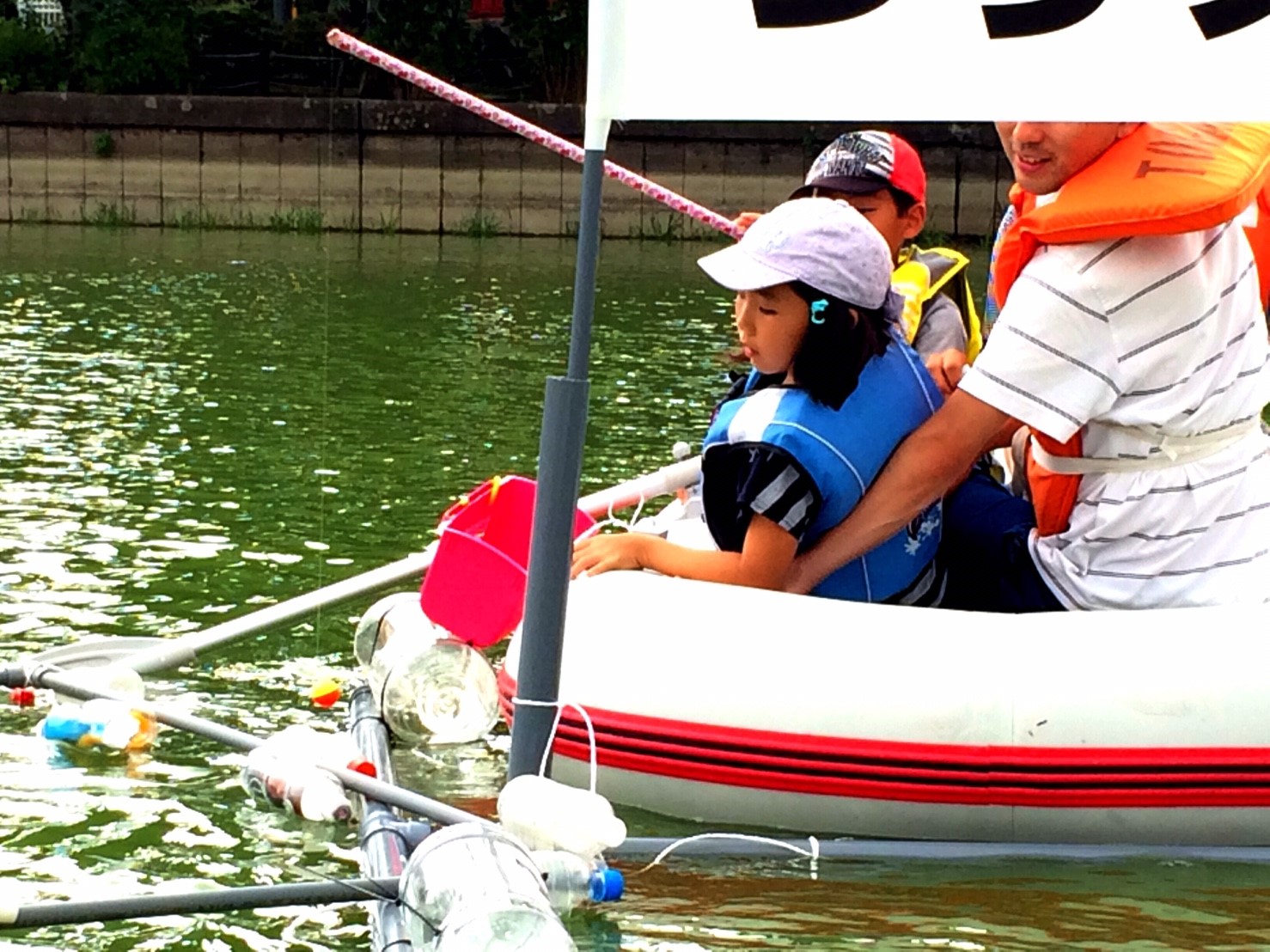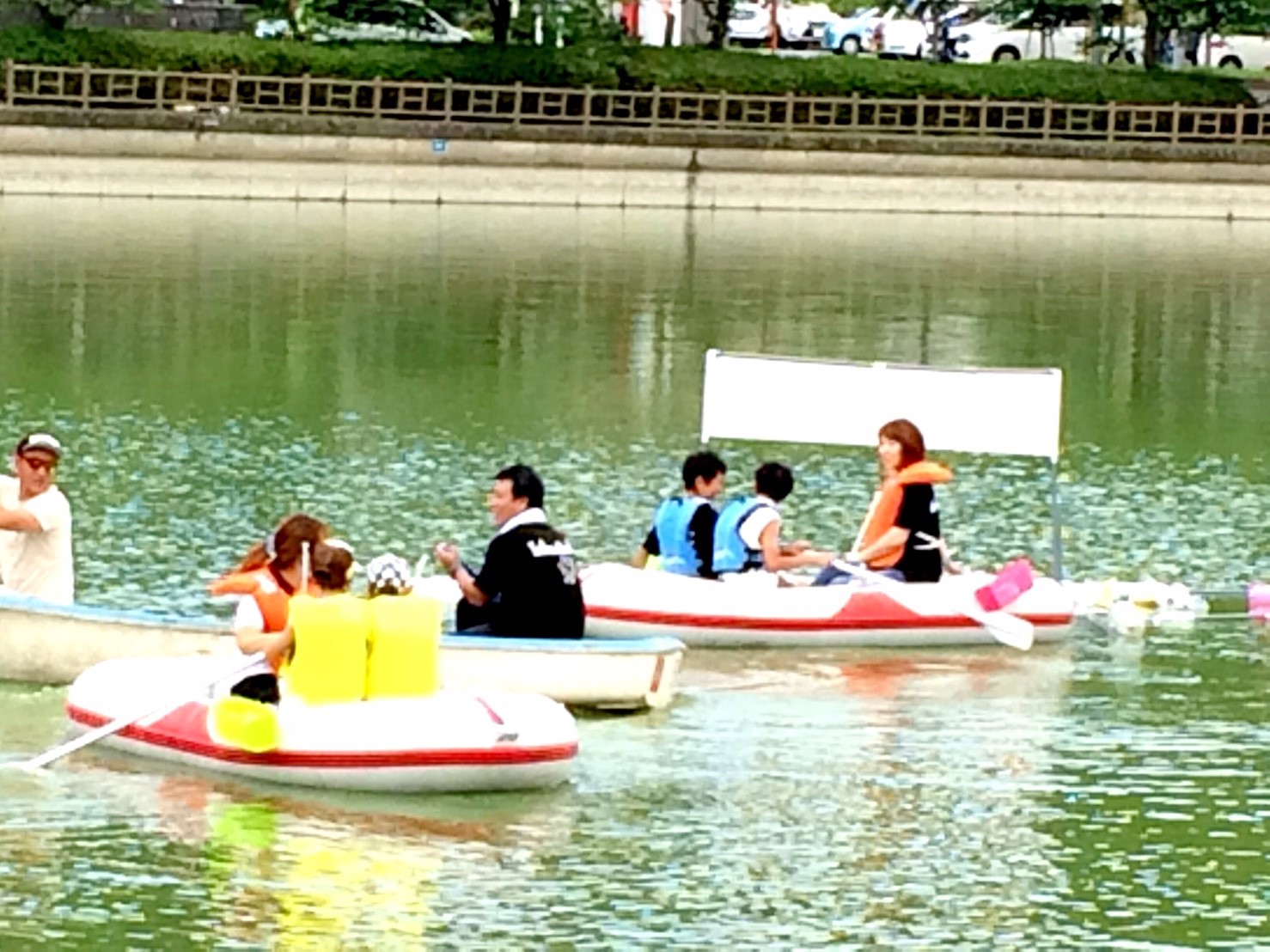「八鶴湖クルーズ」ではボートを利用し、八鶴湖の水質に直に触れてもらうことで、八鶴湖の水質及び環境改善に対する意識の向上を図ります。 対象者は小学生とお父さん、またはお母さんの2組1チームでボートに乗り15分以内に湖畔のコースをクルーズし、景品が当たる抽選番号をGETしてもらう競技です。コースはボートに慣れてもらう練習ゾーン、そして中継ポイント「釣りゾーン」にて抽選番号を吊り上げてもらいます。そして「問題ゾーン」では八鶴湖にちなんだ問題をGETし、ゴールテントで答え合わせ、正解すればもう一つ抽選番号がもらえる仕組みです。抽選番号は最後までもってると良いことが起こるかも!!