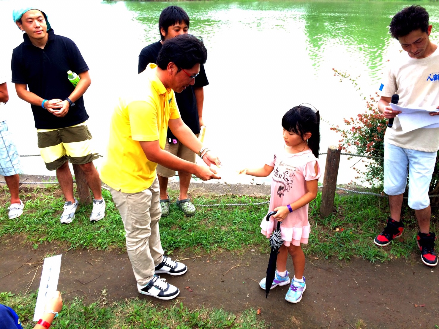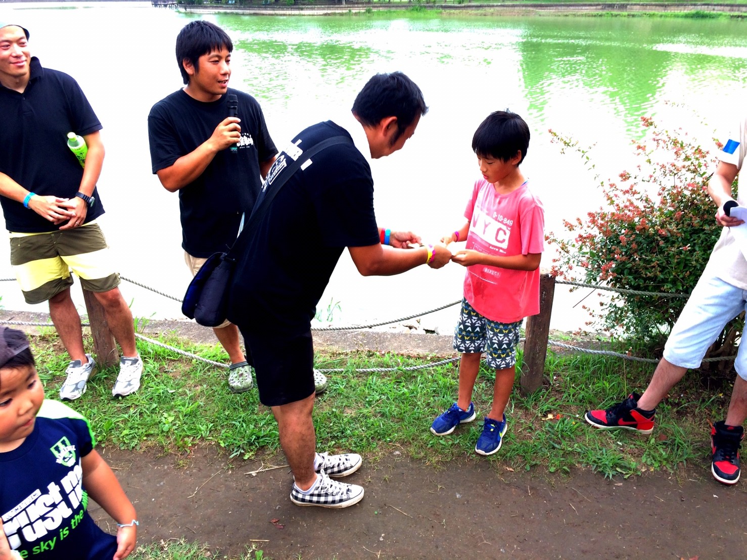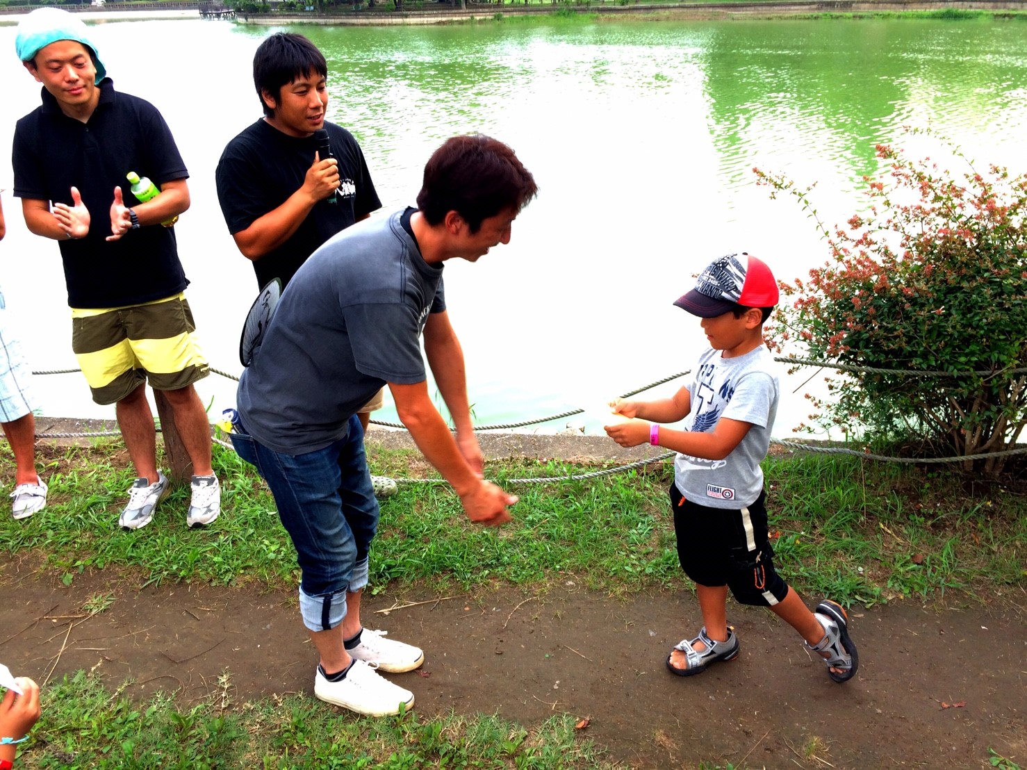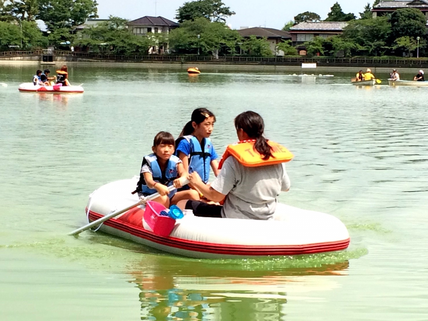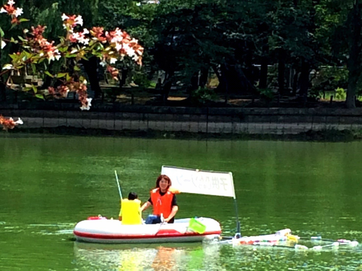 「八鶴湖クルーズ」ではボートを利用し、八鶴湖の水質に直に触れてもらうことで、八鶴湖の水質及び環境改善に対する意識の向上を図ります。 対象者は小学生とお父さん、またはお母さんの2組1チームでボートに乗り15分以内に湖畔のコースをクルーズし、景品が当たる抽選番号をGETしてもらう競技です。コースはボートに慣れてもらう練習ゾーン、そして中継ポイント「釣りゾーン」にて抽選番号を吊り上げてもらいます。そして「問題ゾーン」では八鶴湖にちなんだ問題をGETし、ゴールテントで答え合わせ、正解すればもう一つ抽選番号がもらえる仕組みです。抽選番号は最後までもってると良いことが起こるかも!!