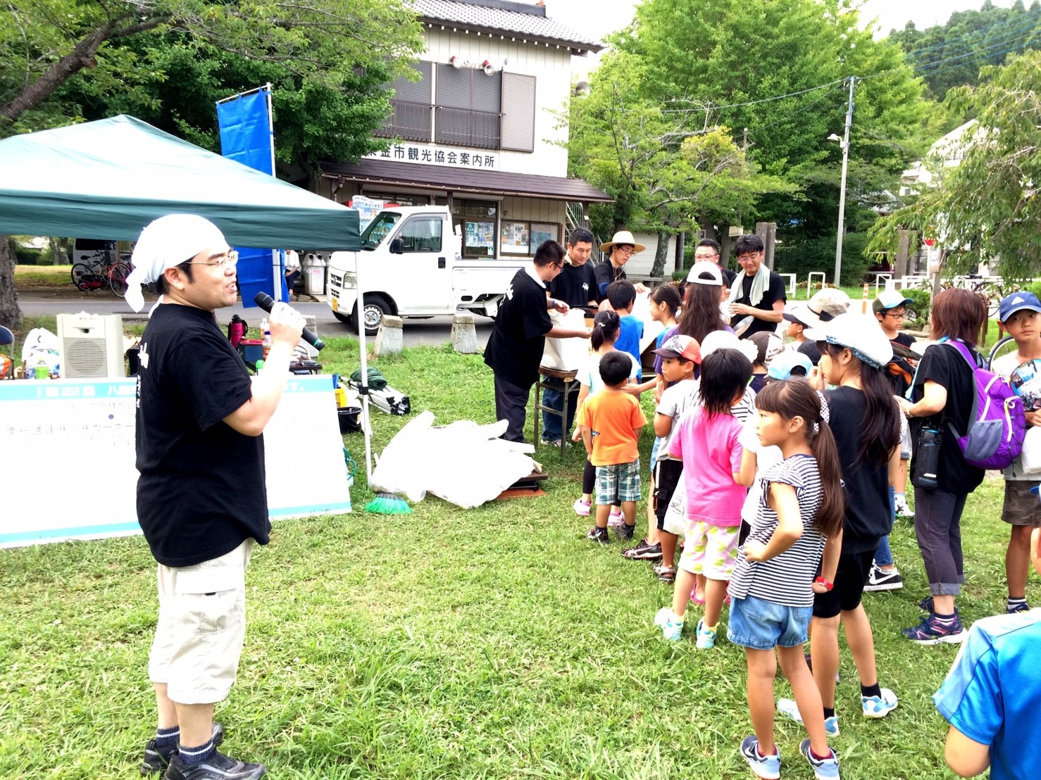 閉会前に全員で八鶴湖周辺のゴミ拾いを行い美化につとめます。