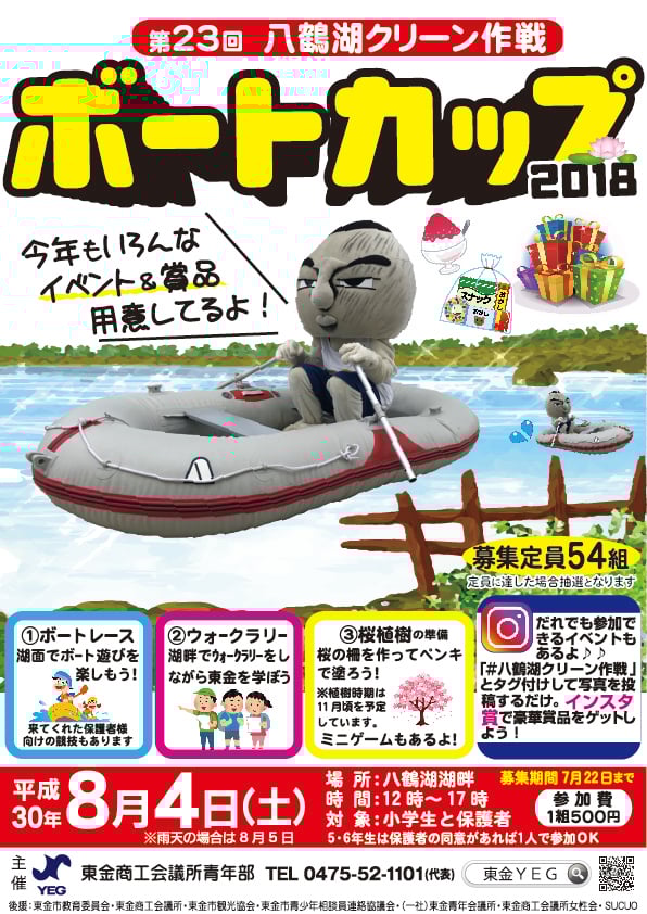 2018年8月4日(土)東金市八鶴湖において、八鶴湖クリーン作戦「ボートカップ2018」が開催されました。