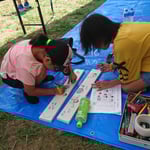 子供たちは思い思いのイラストを描き、個性あふれる板が出来上がりました。
