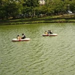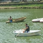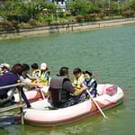 「ボートレース」ではボートを利用し、八鶴湖の水質に触れてもらうことで、八鶴湖の水質及び環境改善に対する意識の向上を図ります。