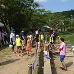 猛暑の中、市内外の多くの小学生や保護者の方々にご参加をいただき、本イベントを通じて楽しみながら八鶴湖畔の環境や景観に直接ふれることにより、水質および環境改善への認識を深めていただきました。